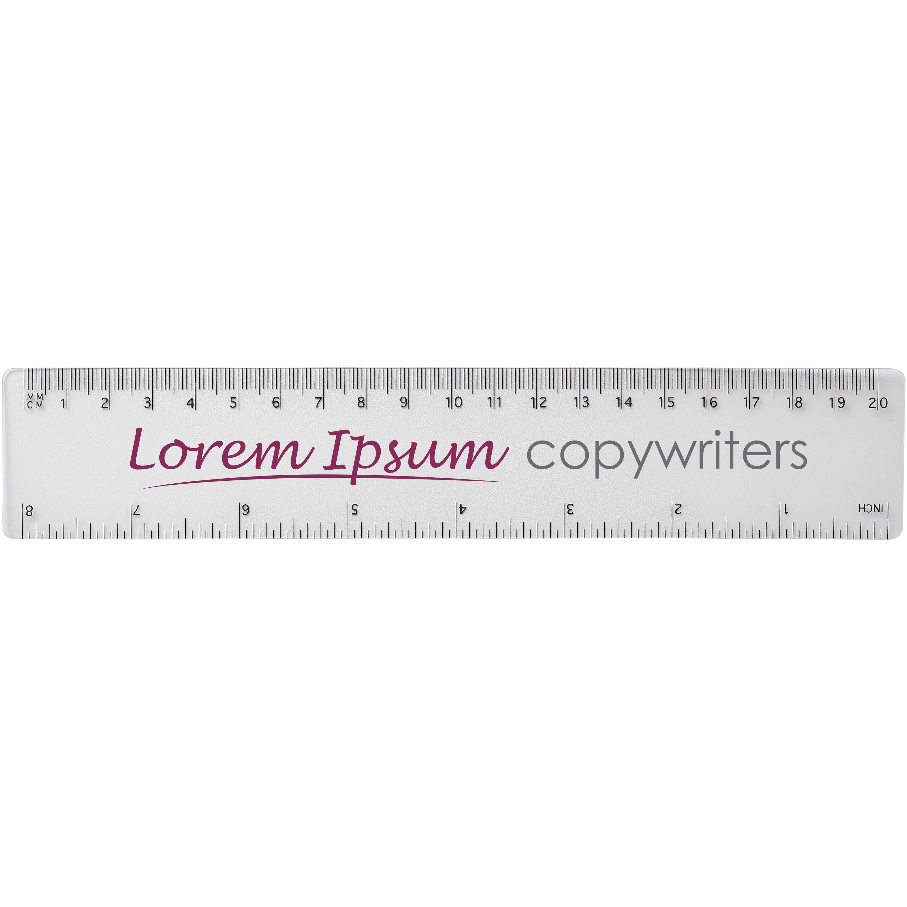 Flexible lightweight plastic ruler with markings available in both inches and centimetres. Please note, the ruler markings are printed along with artwork, plain stock rulers will not carry markings.